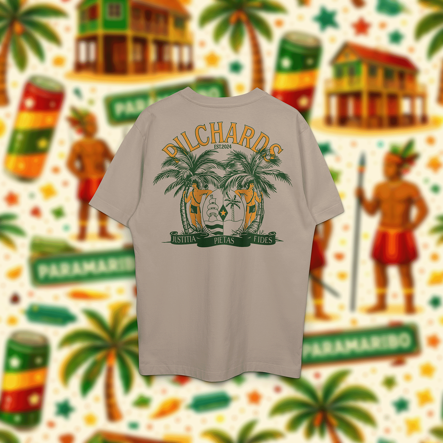 The "Pilchards 'Coat of Arms'" Oversized T-shirt, made from 100% cotton with a comfortable 240 GSM weight, ensures you feel both comfortable and proud every time you wear it.